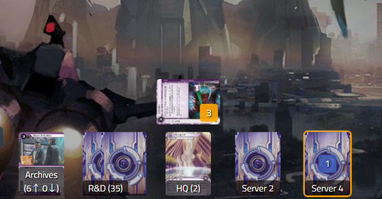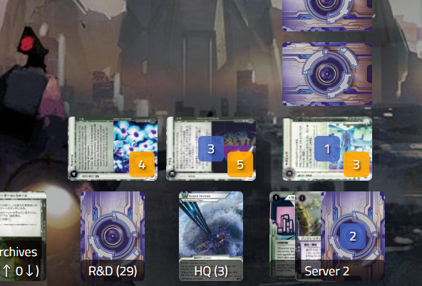 8クレジットまで回復したものの、リソースにたっぷりとクレジットを蓄えたランナーを正面から相手するにはまだまだ。遠隔サーバーのICEを十分な数起動できるようにしておかなければならない。