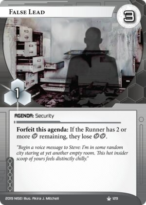 《False Flag》と《Gene Splicer》は得点化するのにアドバンスカウンターを要求する代わりに、アクセスしたランナーに手痛いしっぺ返しを与える待ち伏せ/Ambushの特性も併せ持っている。