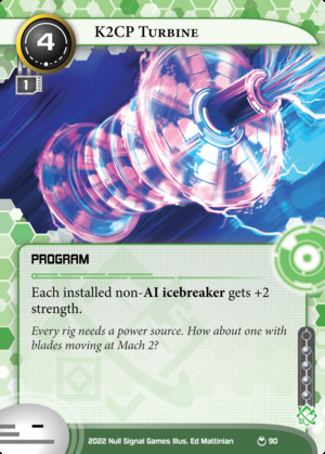 《K2CP Turbine》は無類の強さを発揮する。なぜなら強度6以上になるICEはこのスターアップ環境においてほんの一握りしか存在しないからだ。(《Archer》と《Brân 1.0》、アドバンスカウンター3つ載せた《Pharos》、レゾ直後の《Stavka》くらい)